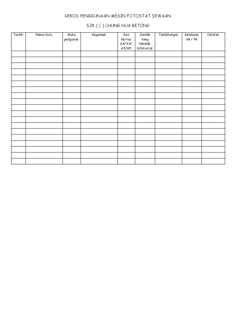 Rekod Penggunaan Mesin Fotostat Sewaan Pdf